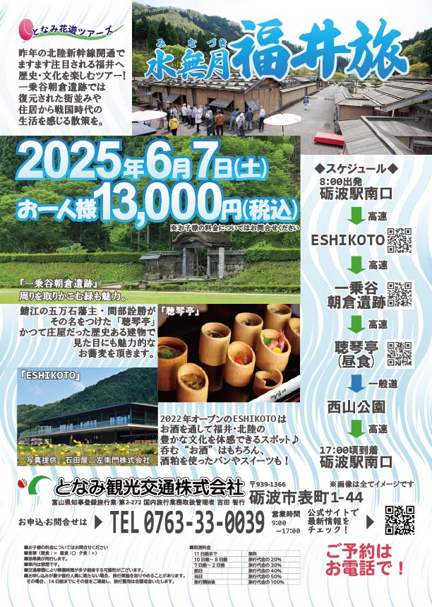 観光モデルコースや、移動のサポート・県外への貸切観光・北信越でのロケまで、となみ観光交通におまかせ下さい。 貸切バス・観光スーパージャンボハイエースコミューター13人乗り・ロケバス・小型タクシーや介護タクシーなど、多様な車種を取り揃え、県外からのお客様や、地元のお客様等から、安心・信頼される会社を目指します。